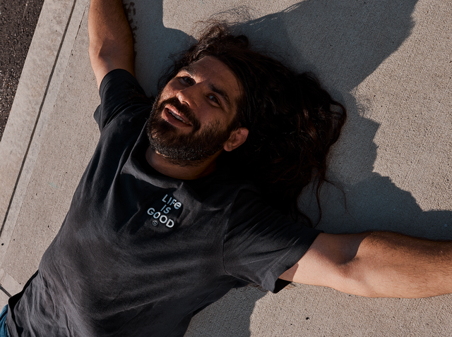 After Anthony's brother Oliver passed away, Anthony found an old t-shirt of his — a Life is Good shirt. The piece became a symbol for Anthony. A reminder to keep pushing.