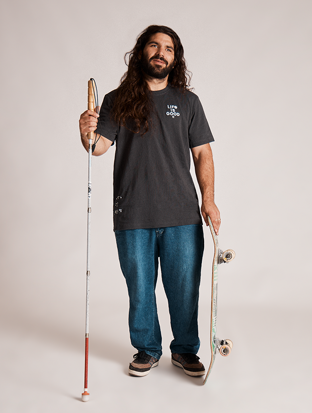 How Anthony Ferraro inspired us to make our first "Life is Good" tee — in braille.