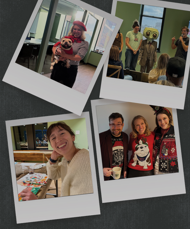 Connection and community are at the heart of everything we do. We're firm believers that the time we spend together adds meaning to our work. Here are a few of the many ways we get together and have fun during the workday.