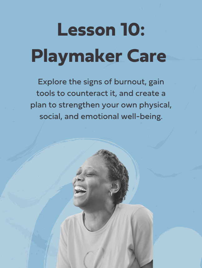 - 1-Day Playmaker Experience: For an additional, $125, add on a 1-day in-person workshop designed to spark joy and fully experience the Playmaker approach in action. Come to play and get a boost of self-care for you. Breakfast and lunch are included.