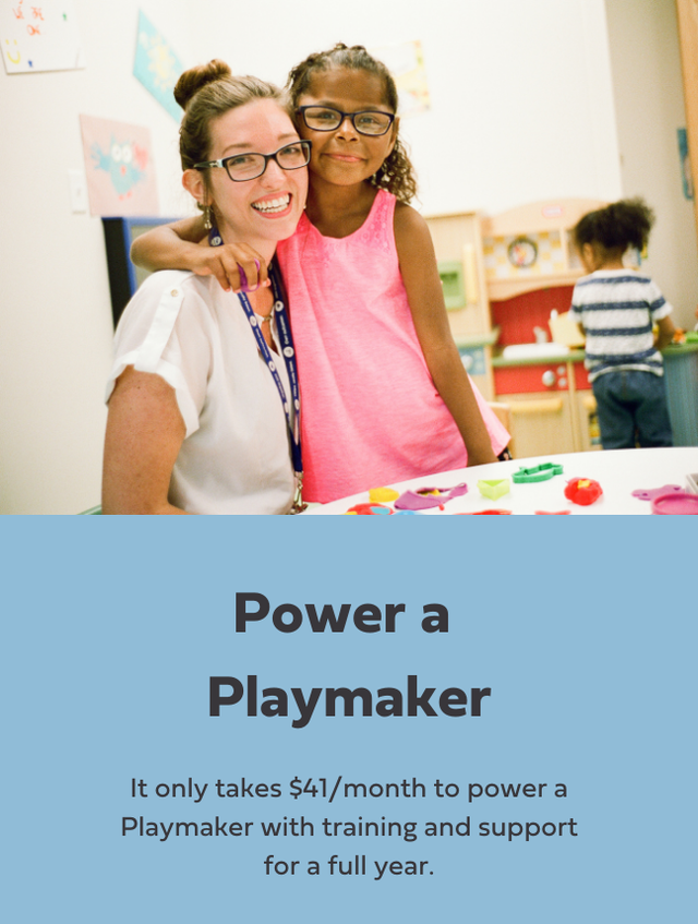 Transform an early childhood organization or school with a gift of $25,000-$50,000. Sponsor an entire cohort through their Playmaker University journey.